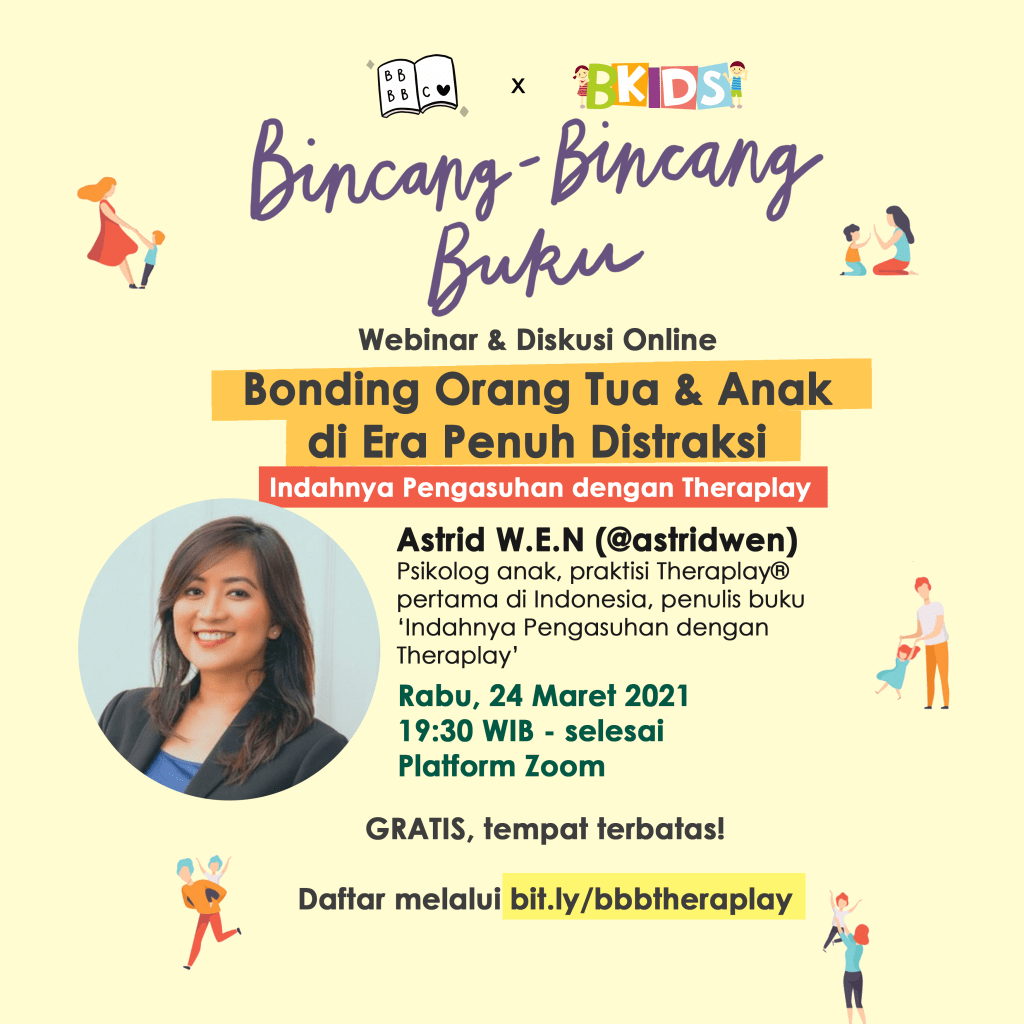 Narasumber: Astrid W.E.N, @astridwen, psikolog anak, praktisi Theraplay pertama di Indonesia, penulis buku ‘Indahnya Pengasuhan dengan Theraplay’