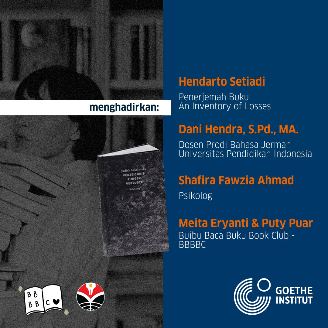 Leseclub di bulan November ini hadir sebagai penutup Leseclub di tahun 2021. Kembali berkolaborasi dengan Buibu Baca Buku, Goethe Institut Bandung mengangkat buku ‘Verzeichnis einiger Verluste’ / ‘An Inventory of Losses’ / ‘Tentang Memori dan Kehilangan Abadi’ karya Judith Schalansky yang terbit tahun 2018. Buku ini mendapatkan posisi ke- 4 pada kompetisi Stiftung Buchkunst’s “The Most Beautiful German Books” competition (German: Die schönsten deutschen Bücher) tahun 2019 dan masuk ke daftar panjang the 2021 International Booker Prize.
