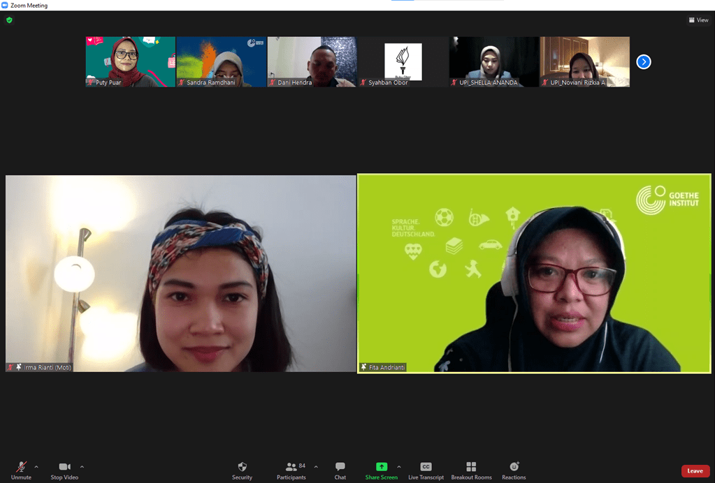 Acara berlangsung secara virtual pada hari Sabtu, 20 November 2021 pukul 13.00 WIB, dibuka dengan sambutan oleh Fita Andrianti selaku perwakilan dari Goethe Institut Bandung dan Bapak Dani Hendra selaku perwakilan program studi Bahasa Jerman, Universitas Pendidikan Indonesia yang juga merupakan Ketua Ikatan Guru Bahasa Jerman Indonesia Jawa Barat, Penulis Buku dan Puisi Bahasa Jerman.