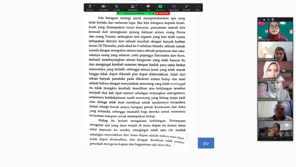 Selain aspek sastra, diskusi Leseclub juga membahas aspek psikologis yang hadir pada buku ‘An Inventory of Losses’ ini, yaitu soal kehilangan dan kecenderungan kita untuk abai terhadap sesuatu sampai kita kehilangannya. Menurut Mbak Shafira, dari sisi psikologis ini dapat dijelaskan dari 2 aspek: