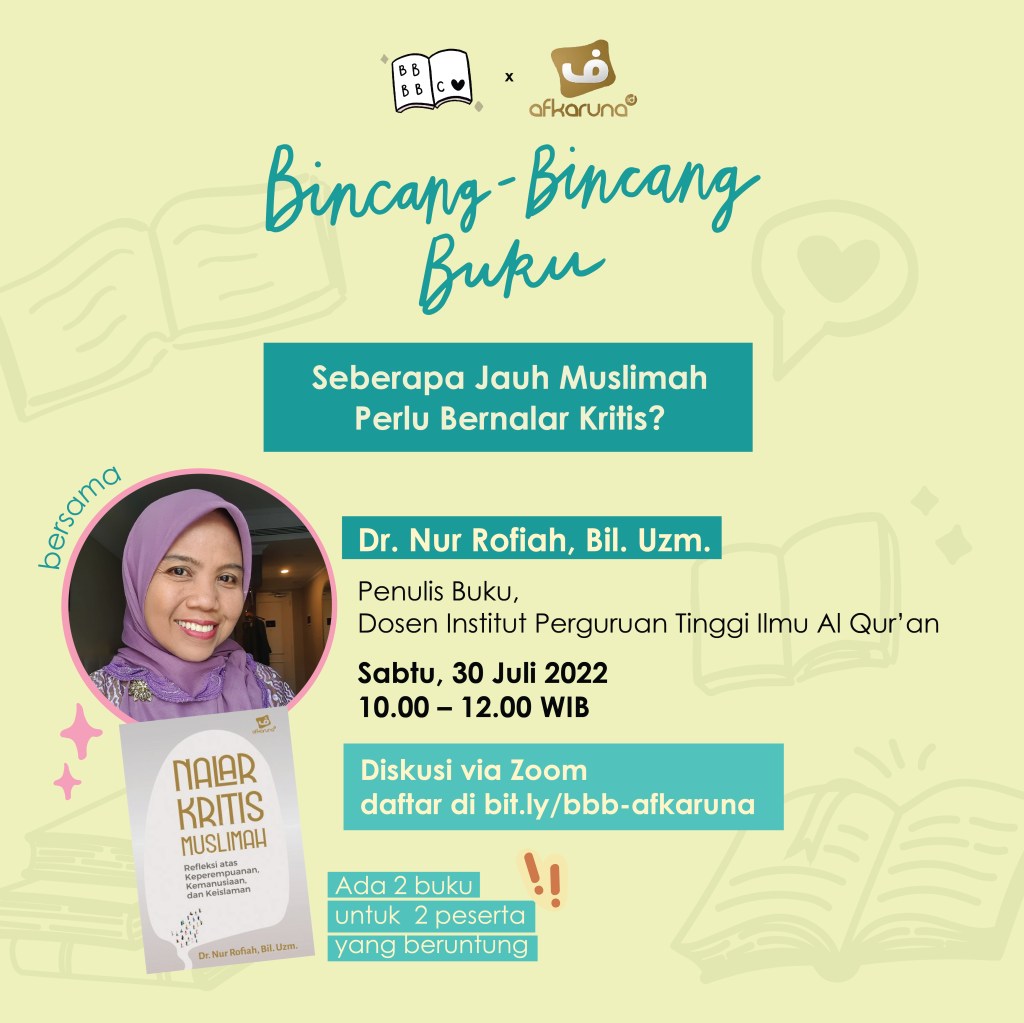 Pada tahun 2020 lalu, penerbit Afkaruna merilis buku yang berjudul Nalar Kritis Muslimah, yang ditulis oleh Dr. Nur Rofiah, Bil. Uzm., seorang dosen pascasarjana Institut Perguruan Tinggi Ilmu Al Qur’an sekaligus inisiator Ngaji Keadilan Gender dalam Islam. Dalam bukunya, beliau menegaskan bahwa perempuan adalah subjek penuh kehidupan, di mana perempuan juga berhak mengembangkan potensinya dan menebarkan manfaat di dunia sesuai kemampuannya ✨️