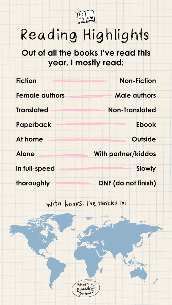 Hai Buibu & Manteman, tak terasa kita sudah sampai di penghujung tahun 2022. Bagaimana pengalaman membaca kalian? Mudah-mudahan menyenangkan! Selain melakukan Reading Challenge Wrap Up 2022, kami juga ingin mengajak kalian untuk berbagi cerita tentang buku dan bacaan sepanjang 2022 melalui ‘Bookish Year Book 2022’.
