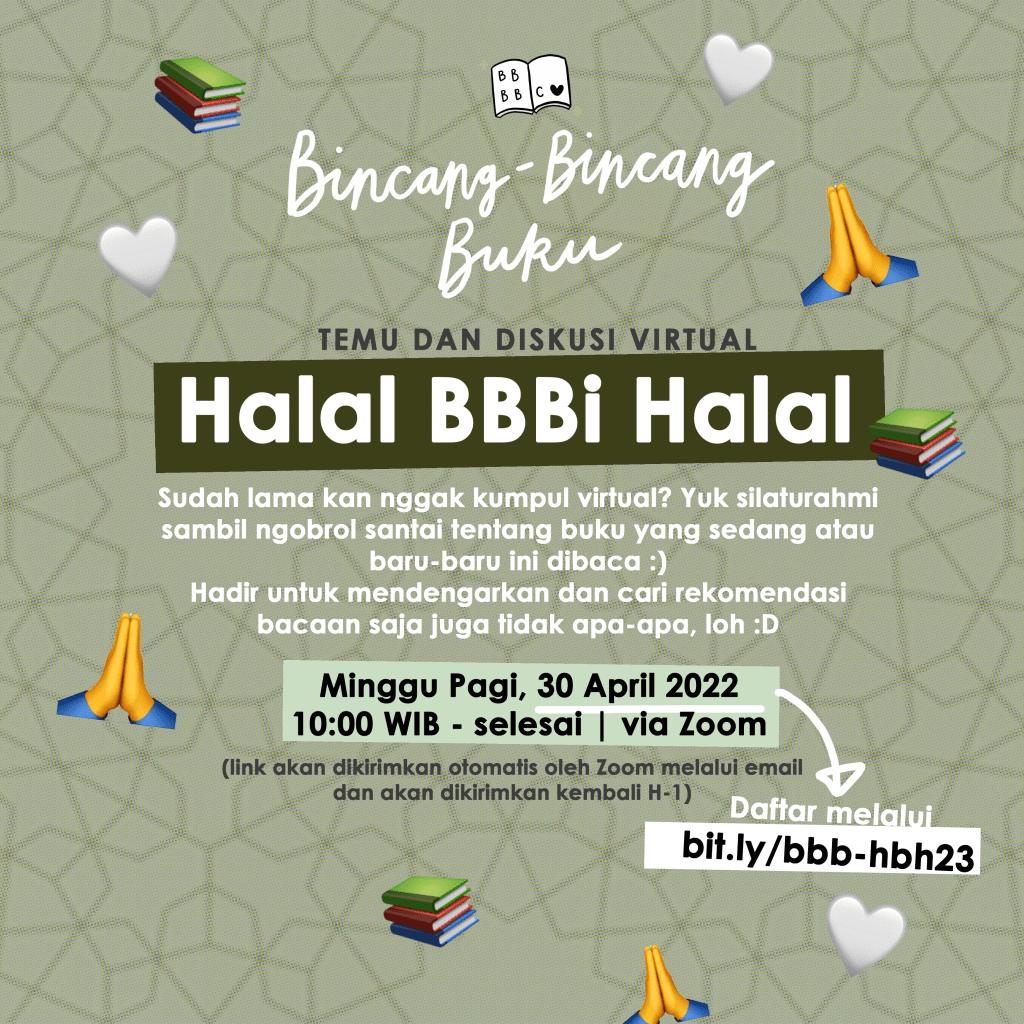 Setelah rehat selama bulan Ramadan, kami kembali mengajak Buibu & Manteman untuk kumpul lagi dan ngobrol santai via Zoom tentang buku yang sedang dibaca, baru-baru ini dibaca, atau bahkan baru masuk daftar incaran untuk dibaca.