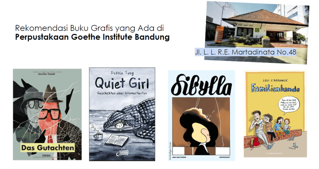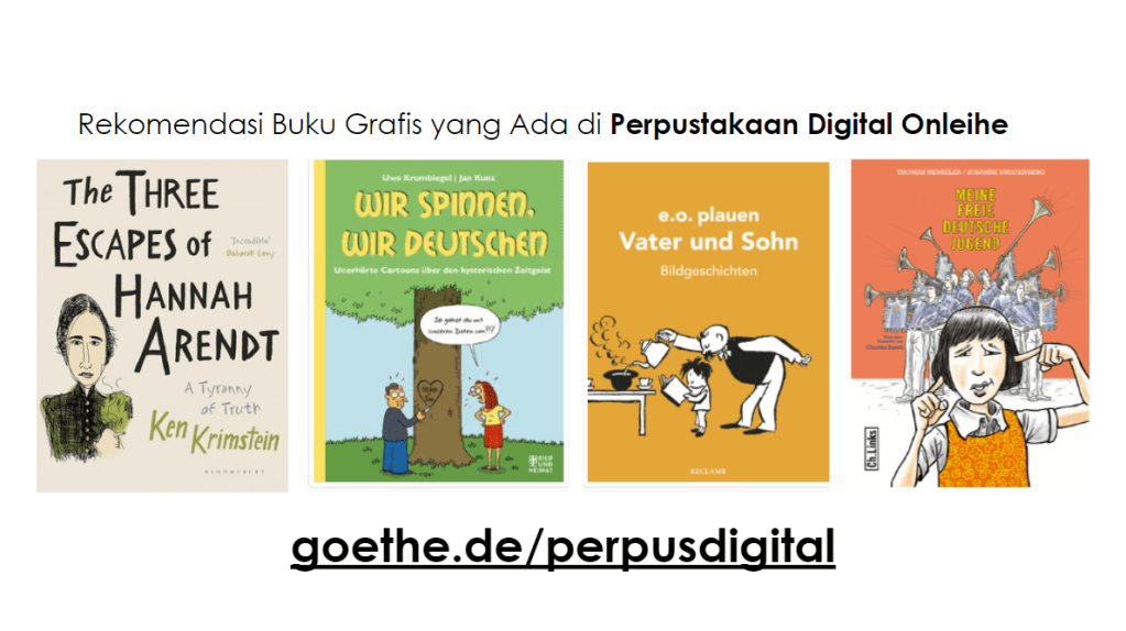 Meita Eryanti dari BBB Book Club juga membagikan rekomendasi buku-buku komik atau novel grafis berbahasa Jerman, terjemahan Jerman atau yang berkaitan dengan Jerman.