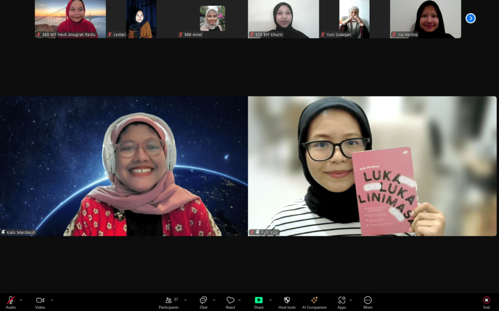 Dengan alasan tersebut, kami mengundang Kalis Mardiasih, seorang aktivis perempuan yang baru saja menerbitkan buku barunya yang berjudul Luka-luka Linimasa (ulasan oleh tim kami dan dapat dibaca melalui link ini ya!)