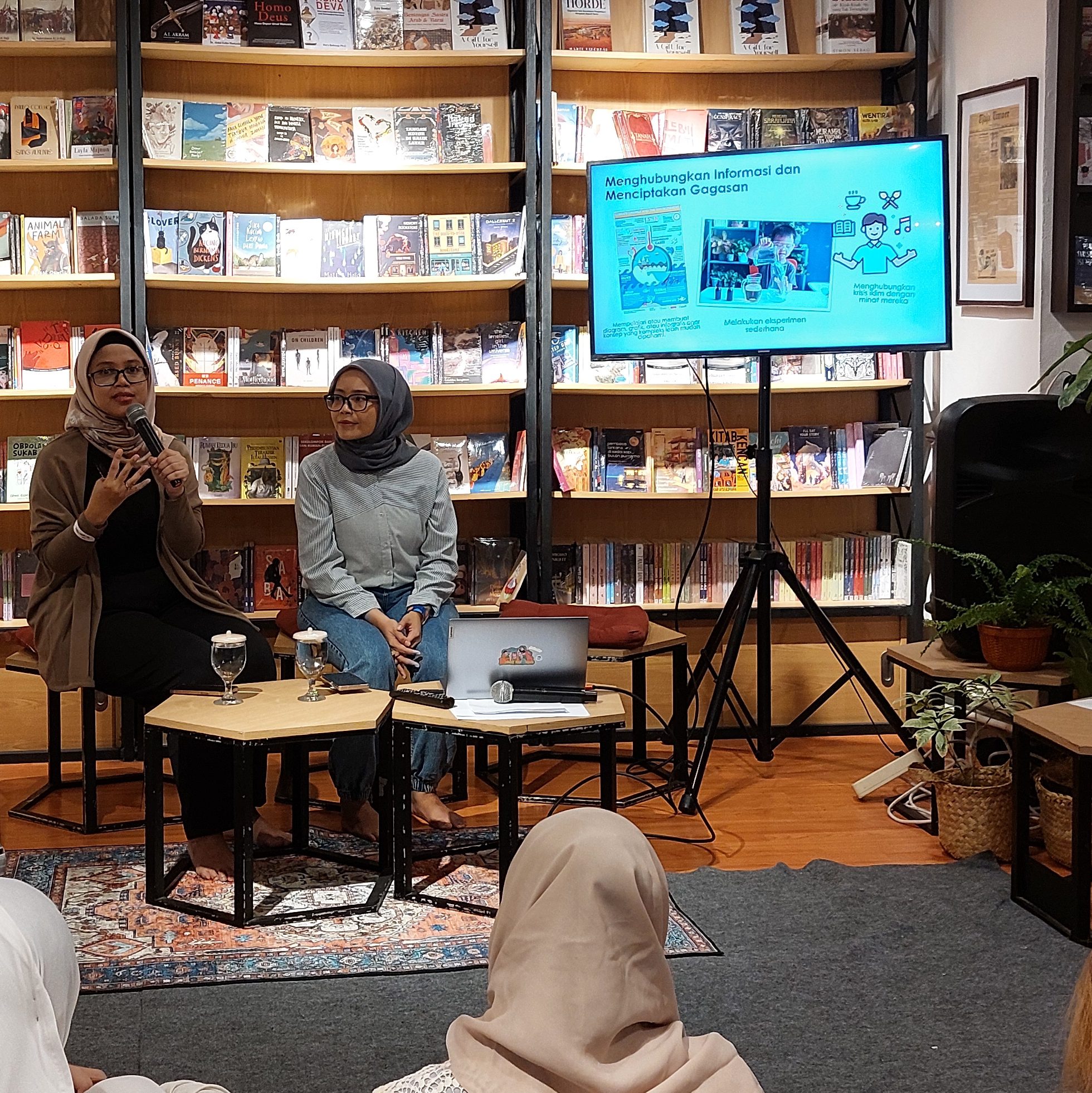 Kak Puty menyoroti tentang betapa dekatnya akibat dari isu iklim dengan kehidupan sehari-hari keluarga, yang sayangnya, belum banyak disadari oleh ibu. Sementara Kak Amel menjelaskan tentang metode read aloud atau membaca nyaring yang tidak hanya dapat menjadi gerbang bagi anak untuk menyukai kegiatan membaca, tapi juga bisa jadi sarana bagi ibu untuk mendapatkan informasi mengenai iklim melalui sumber yang tidak “rumit” dan lebih mudah diakses.