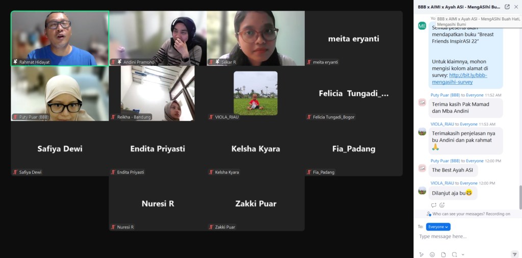 Maka dari itu, dalam rangka Pekan ASI Sedunia 2024 yang bertema “Closing the Gap: Breastfeeding Support for All” kami mengundang komunitas support system bagi ibu menyusui dan komunitas ayah untuk berbincang dalam webinar bertajuk “MengASIhi Buah Hati, Mengasihi Bumi”. Kegiatan webinar ini dilakukan secara virtual melalui Zoom yang diadakan pada Sabtu, 10 Agustus 2024.