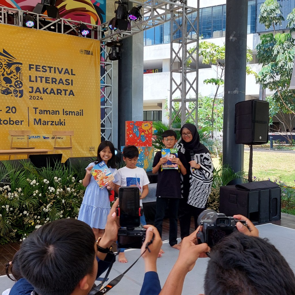 Pada perhelatan Festival Literasi Jakarta di akhir bulan Oktober, BBB Book Club berkesempatan untuk mengisi sesi Read Aloud dan Bookish Play di hari Minggu pagi. Kali ini, kak Amel dari BBB Book Club membacakan buku Cita-Cita Penyelamat Bumi dari Seri Keluarga Panik.