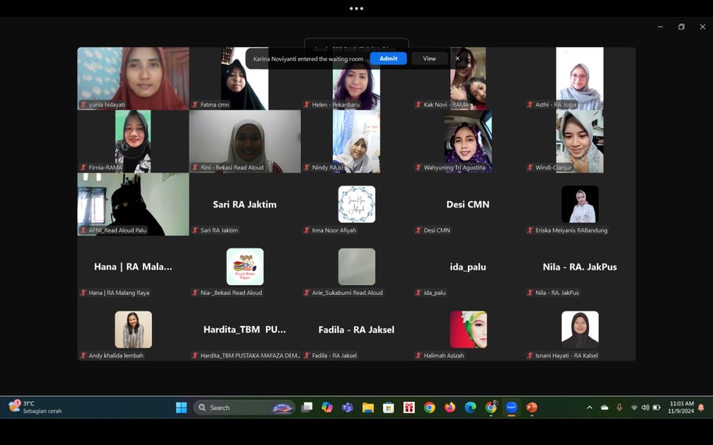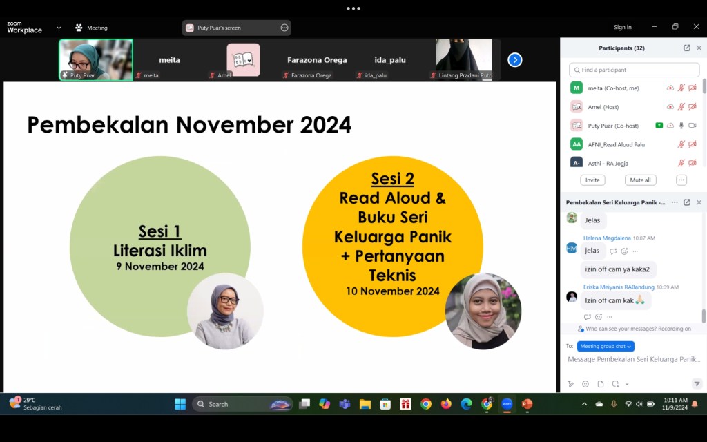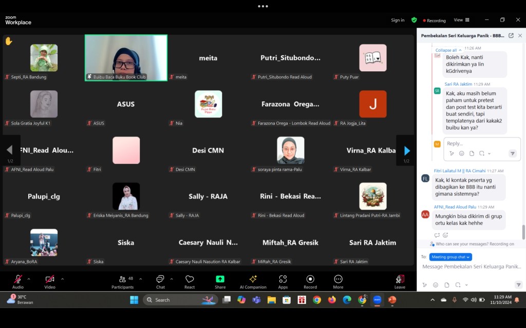 Kegiatan pembekalan sesi read aloud Seri Keluarga Panik ini dilakukan selama dua hari, yaitu selama 9 hingga 10 November 2024.