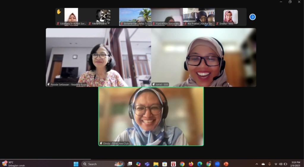 Setelah meluncurkan seri buku anak ‘Seri Keluarga Panik’, kali ini Buibu Baca Buku Book Club berkolaborasi dengan Read Aloud Indonesia untuk pelaksanaan workshop read aloud. Kegiatan workshop read aloud kali ini berlangsung hanya untuk peserta Program Aktivasi Read Aloud Buku Literasi Iklim untuk Keluarga, agar para peserta memiliki kemampuan yang kompeten untuk melaksanakan kegiatan read aloud di wilayahnya masing-masing.