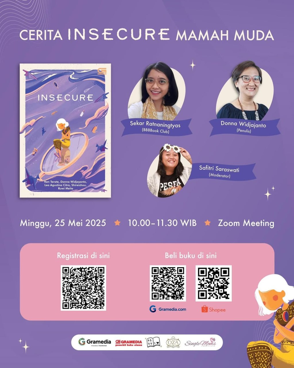 Pada hari Minggu, 25 Mei 2025 lalu, BBB Book Club diundang untuk menjadi perwakilan pembaca dalam diskusi buku Cerita Mamah Muda: Insecure yang diadakan oleh Gramedia Pustaka Utama. Diskusi ini dihadiri pula oleh kelima penulisnya, yaitu Donna Widjajanto, Ken Terate, Lea Agustina Citra, Shireishou, dan Ruwi Meita.