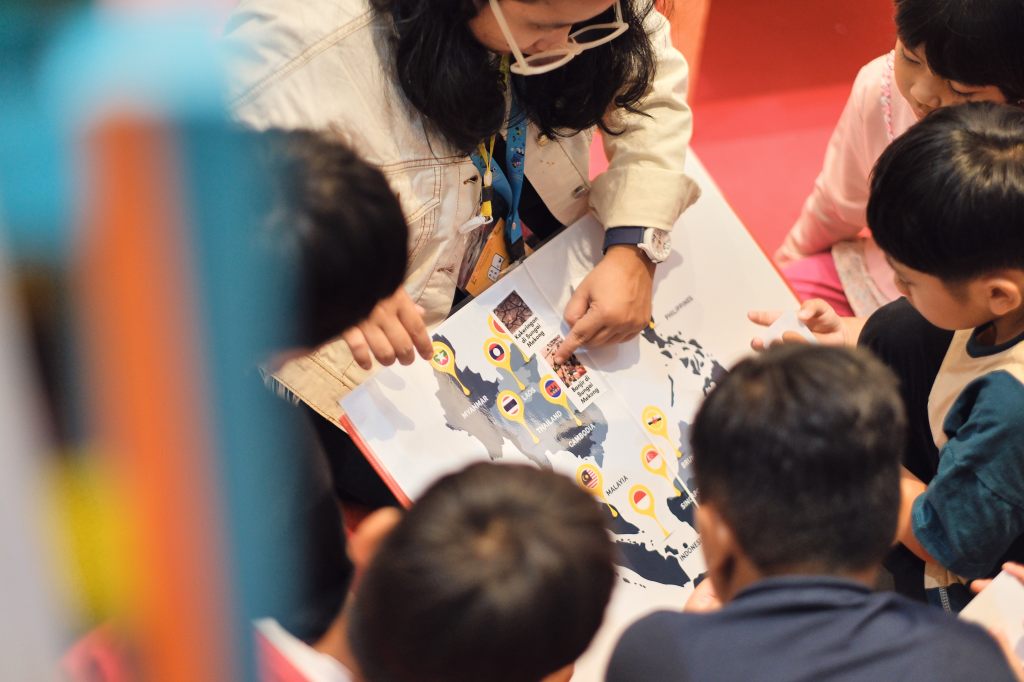 Setelah sesi perkenalan dengan BBB Book Club, kak Meita memberikan pemaparan tentang apa itu perubahan iklim dan bagaimana perubahan iklim mempengaruhi kehidupan masyarakat di Asia Tenggara kepada anak-anak. Masyarakat yang dibahas adalah orang-orang yang tinggal di sekitar Sungai Mekong. Sungai besar ini melintasi lima negara ASEAN sekaligus, loh! Mulai dari Myanmar, Vietnam, Laos, Kamboja, hingga Thailand.