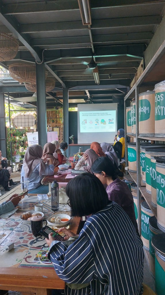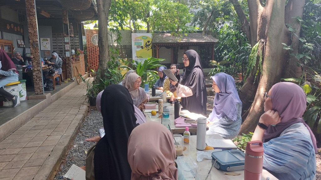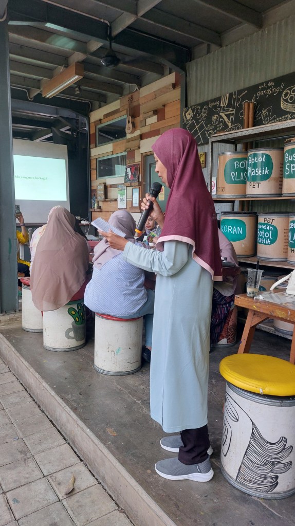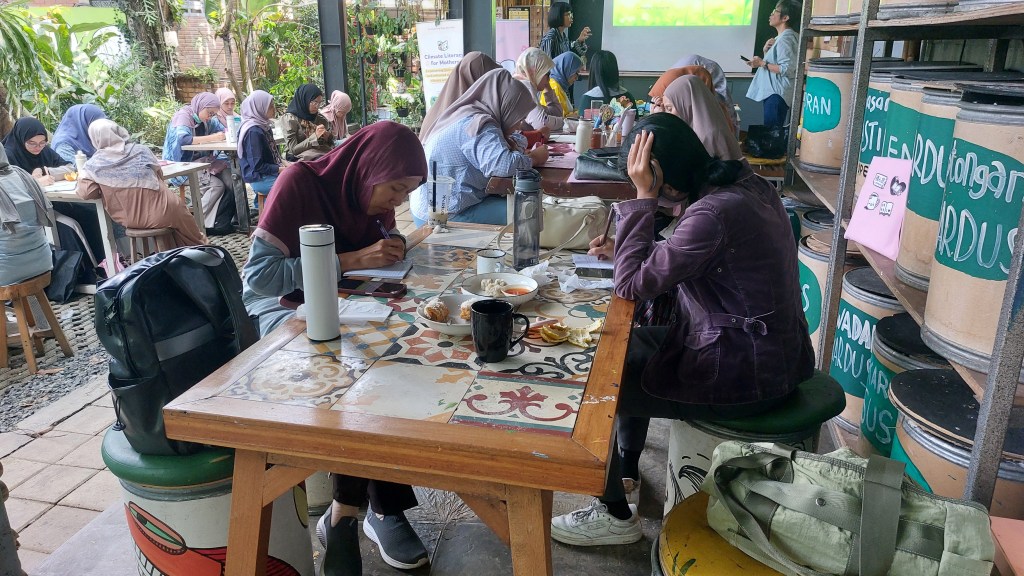 Workshop menulis ini bertajuk “Writing for the Soul – Navigating Climate Anxiety“. Setelah dibuka pada pukul 9 pagi, kak Puty Puar (Founder dan Executive Director BBB Book Club) membuka sesi ini dengan menjelaskan tentang program Climate Literacy for Mothers, sebuah program yang diinisiasi oleh BBB Book Club sejak awal tahun 2024. Kak Puty menjelaskan kenapa ibu-ibu perlu paham tentang krisis iklim dan bagaimana krisis iklim dapat secara langsung memberi dampak pada kehidupan sehari-hari ibu dan keluarga, maupun masa depan anak.