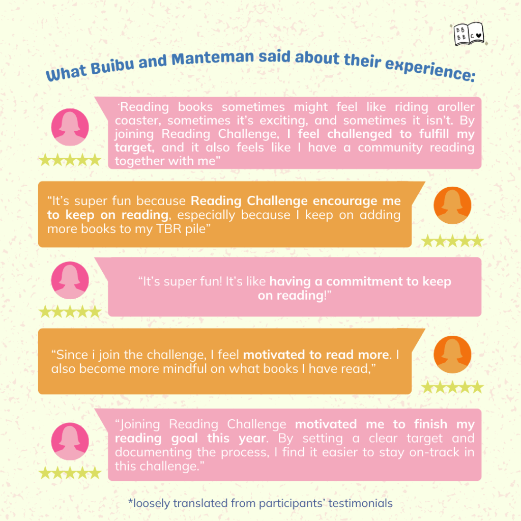 To evaluate the journey, we asked our audience to share and reflect on their reading journey using our template and wrap-up form. Here’s what they said about the challenge: