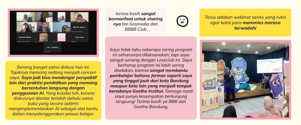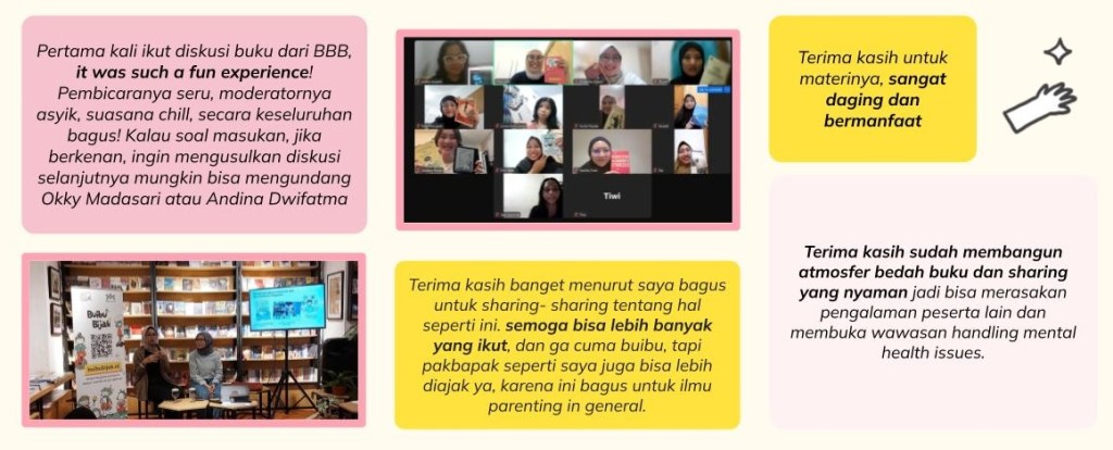 - Buibu Baca Bersama, an online reading book session where we gathered with women, especially mothers, around Jabodetabek and Bandung, to read and discuss our readings. With total of 56 sessions throughout 2025 and 330 total beneficiaries.