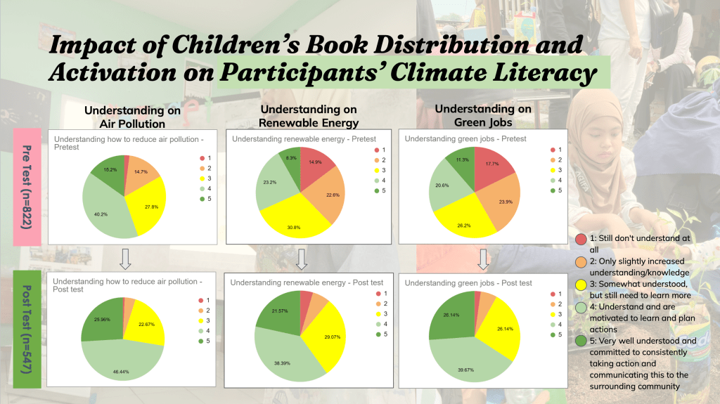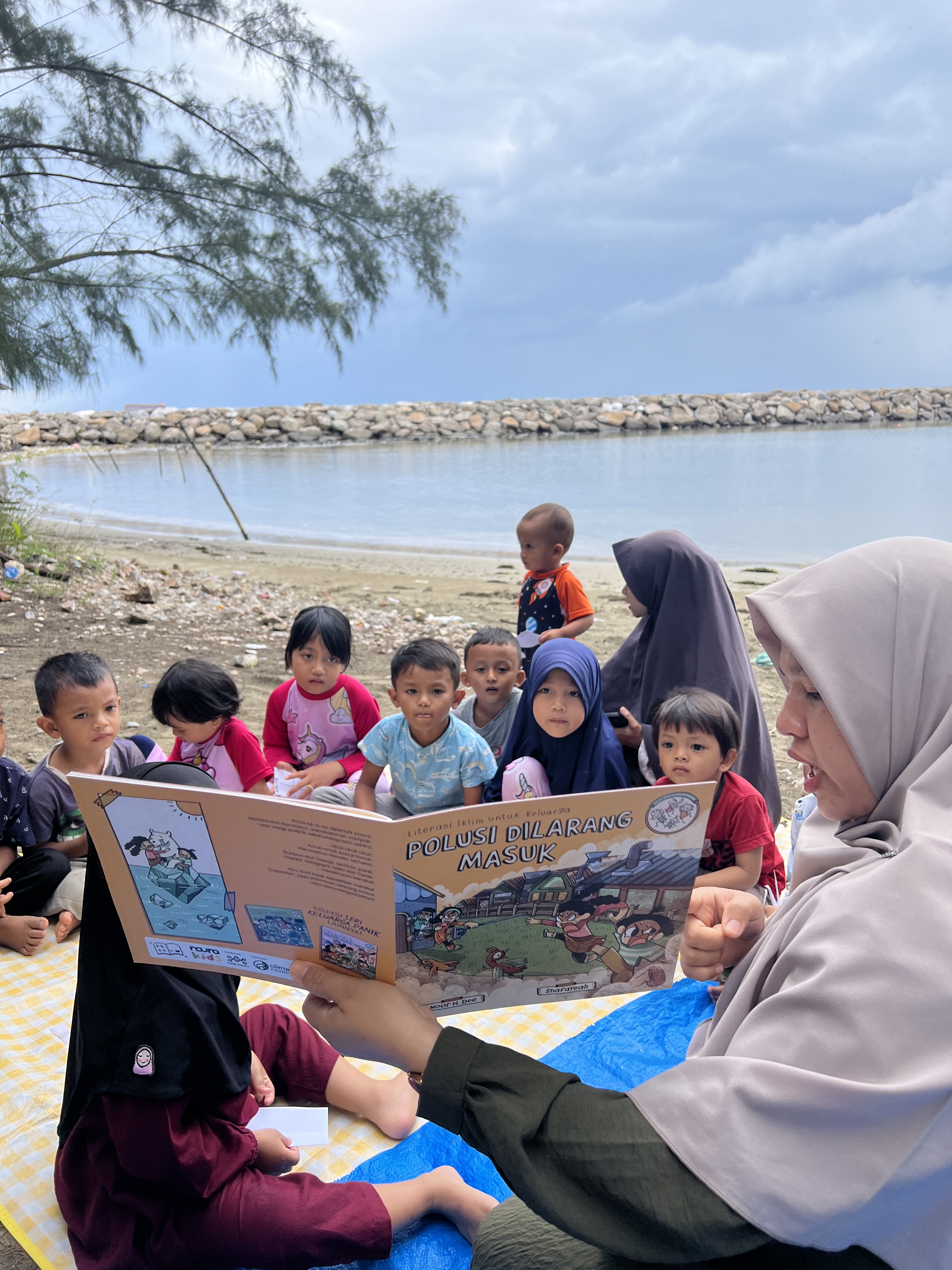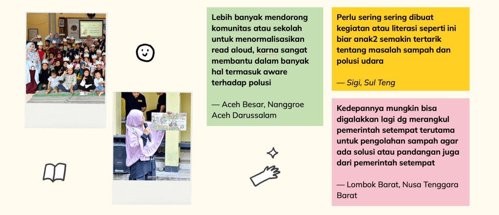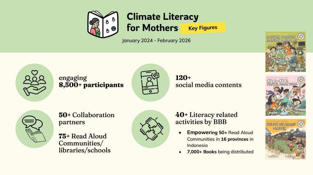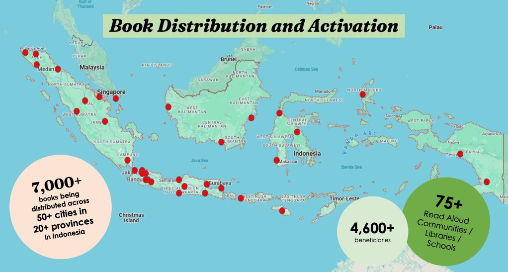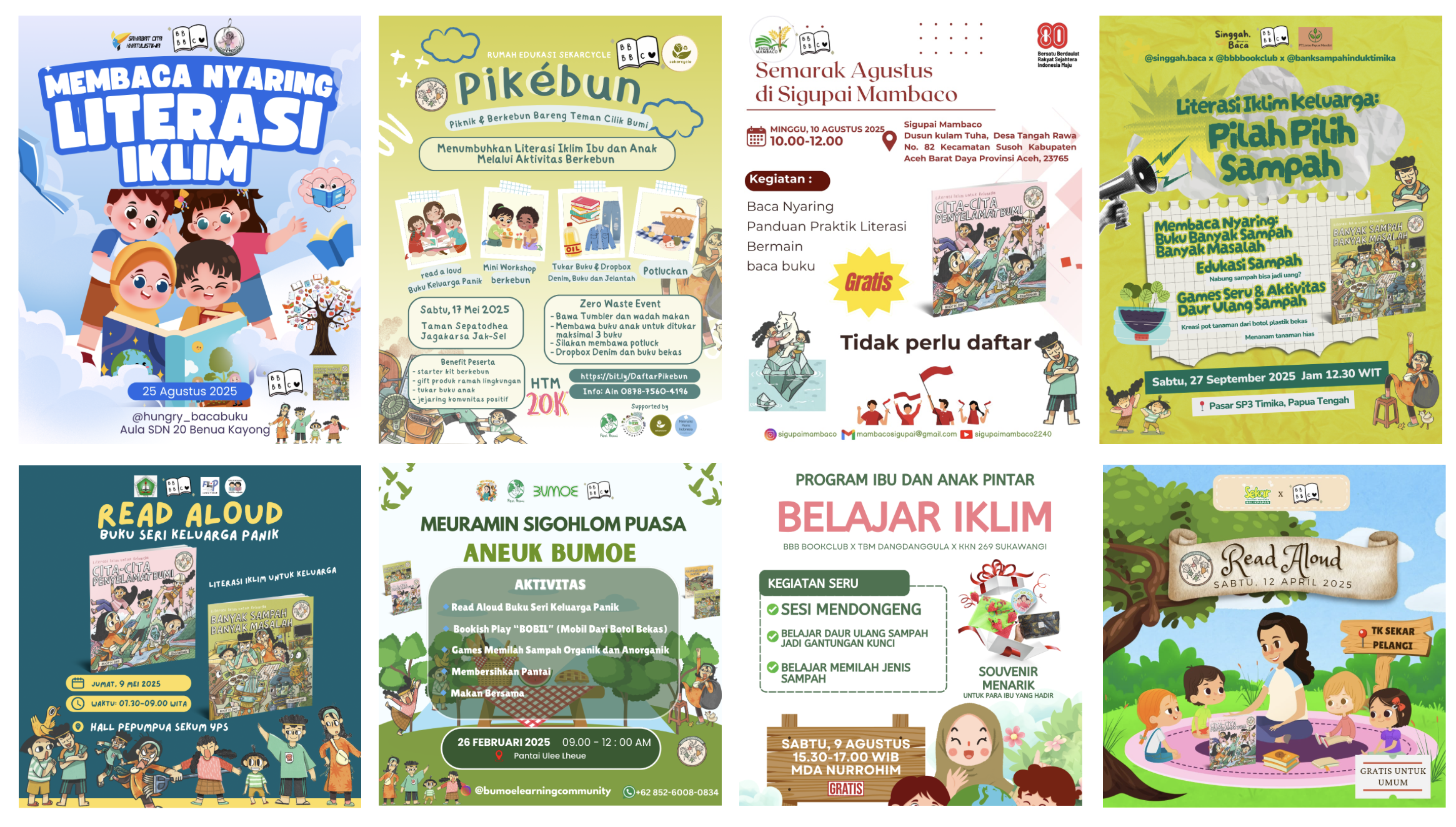As of December 2025, we distributed 7.000+ Seri Keluarga Panik books to more communities in Indonesia. Even more than that, we also empowered 50+ more Read Aloud Communities in 16 provinces in Indonesia to organize activation event to help families across the country see why climate change matters and how they can be part of the solution