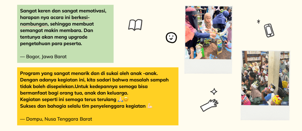 - Climate Literacy for Mothers, which has been around since January 2024 had 10 online events and 12 offline events with 960 total beneficiaries. We also had a regrant scheme where we collaborated with local communities to create activation events for our Seri Keluarga Panik book. With 44 regrant events by local communities, we have engaged with 2,633 beneficiaries throughout Indonesia.