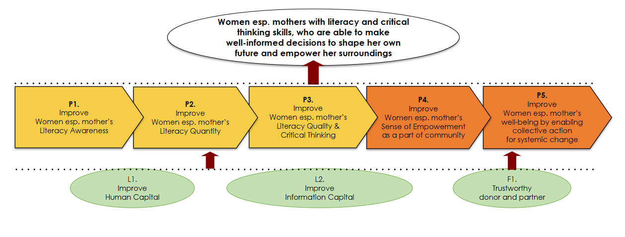 At Buibu Baca Buku, we’re driven by our mission to create real, lasting impact. To ensure we’re always growing and true to our values of continuous improvement, we track our outcomes with a clear model: